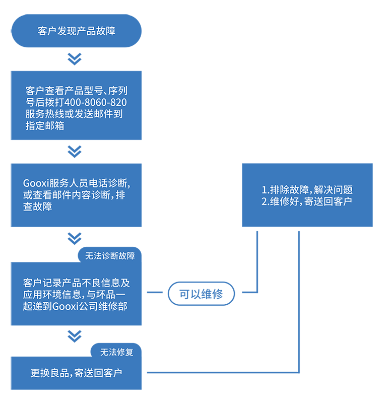 5. 配件更换服务(免费或收取成本费用由Gooxi专业工程师根据实际情况而定)